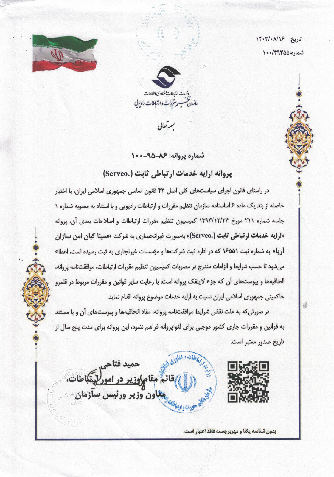 اخذ مجوز سرکو از سازمان تنظیم مقررات رادیویی